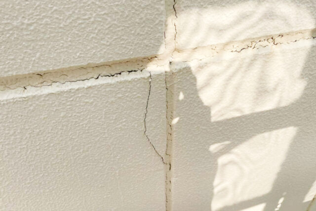 コンクリートのひび割れ(クラック)や、タイル目地の劣化・タイルの浮きや剥がれが雨水の浸入口となります。タイル自体に防水性はなく、下地への水の侵入が雨漏りに繋がります。