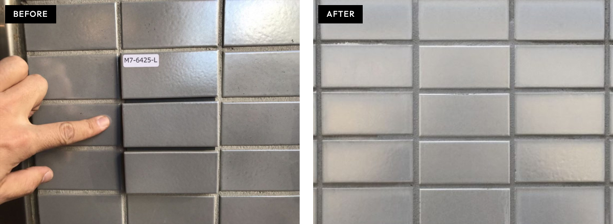 営業中のテナントビルで、ラスタータイルの軽微な浮きが複数箇所で発見されたケースです。
