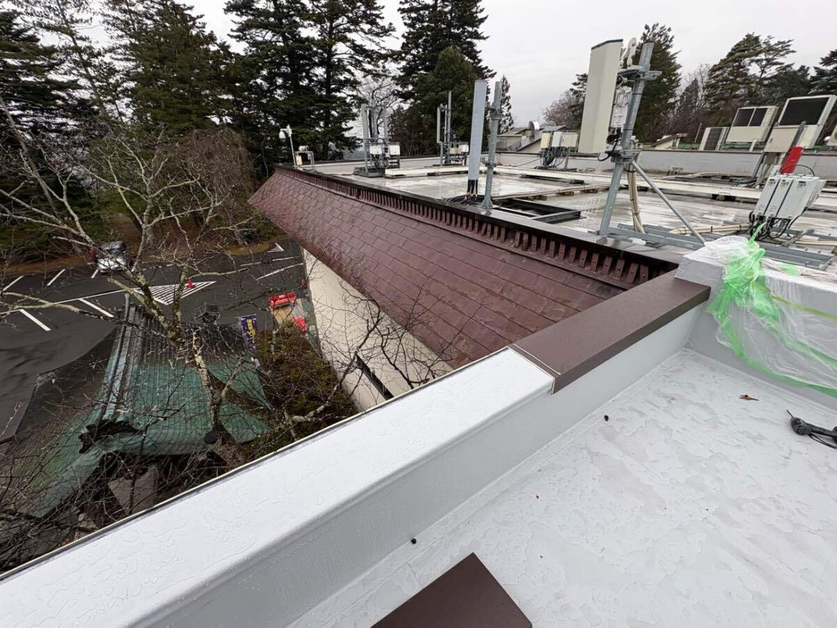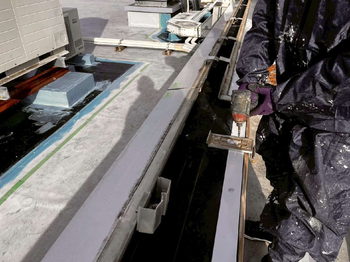 また、立上りや設備周り・笠木部分など、雨水の侵入リスクが高い箇所についても重点的に補修・防水処理を行い、再発防止を図りました。