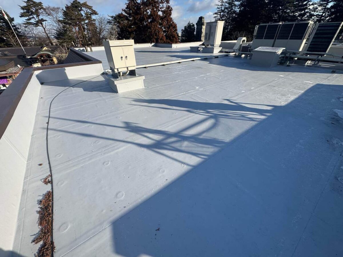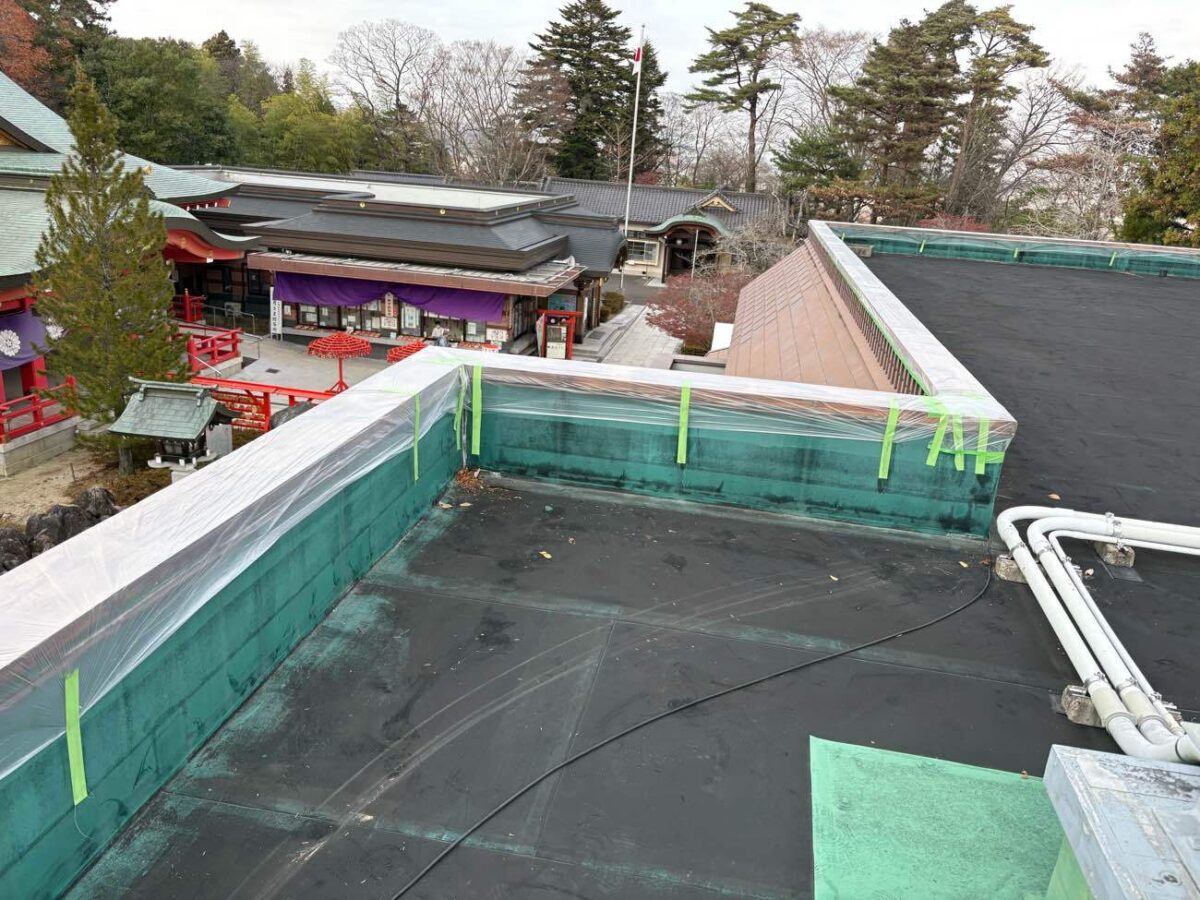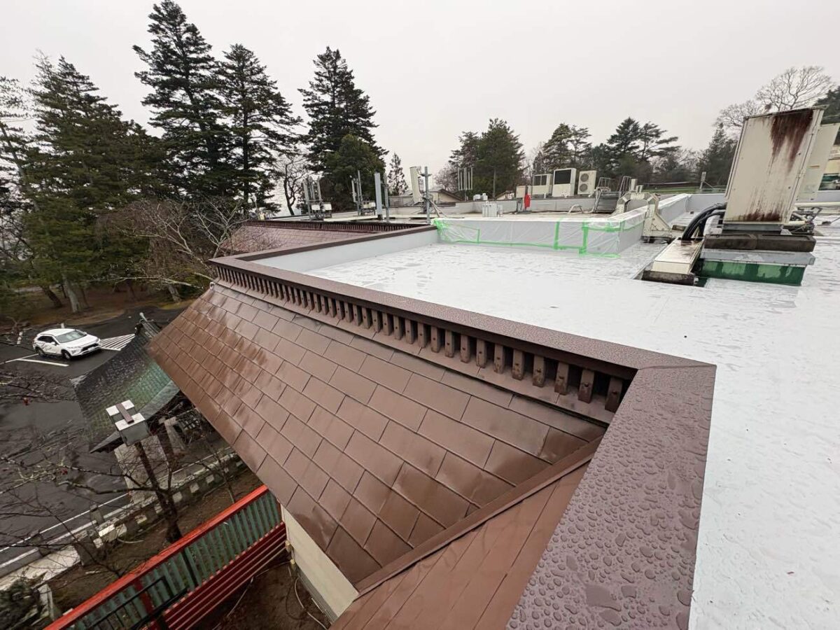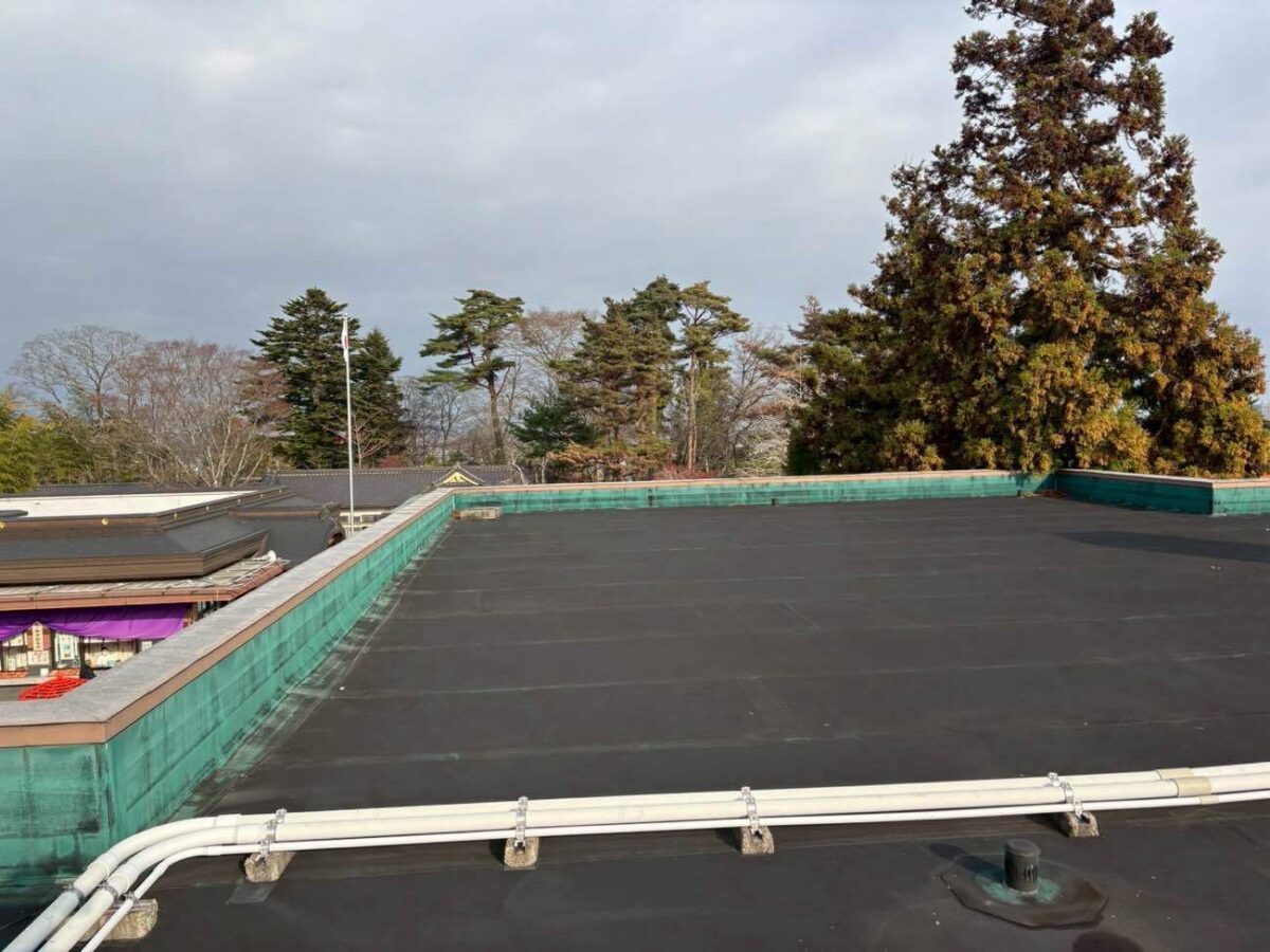 某展示館屋上防水改修工事|塩ビシート工法|宮城県