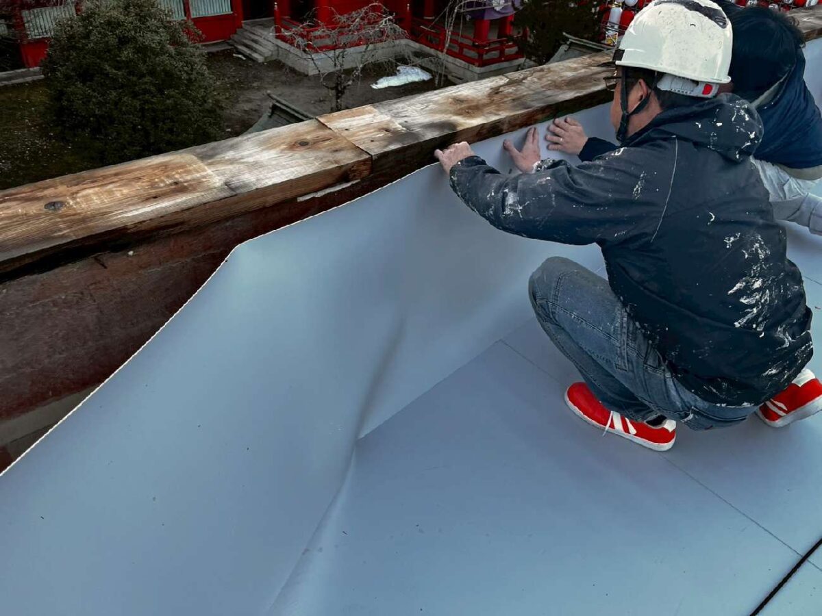 屋上の防水シートが経年劣化により傷み、複数箇所から雨漏りが発生していたためご依頼をいただきました。